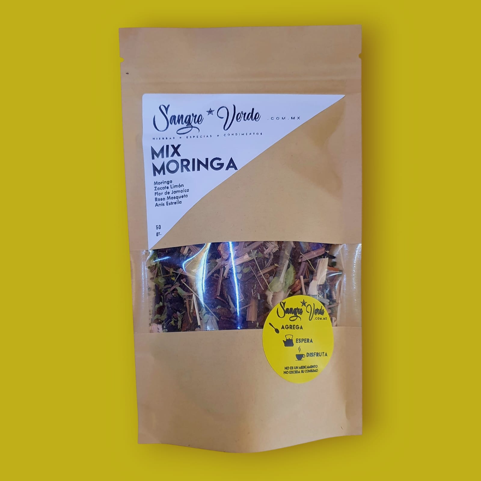 Moringa, zacate limón, jamaica, rosa mosqueta y anís estrella